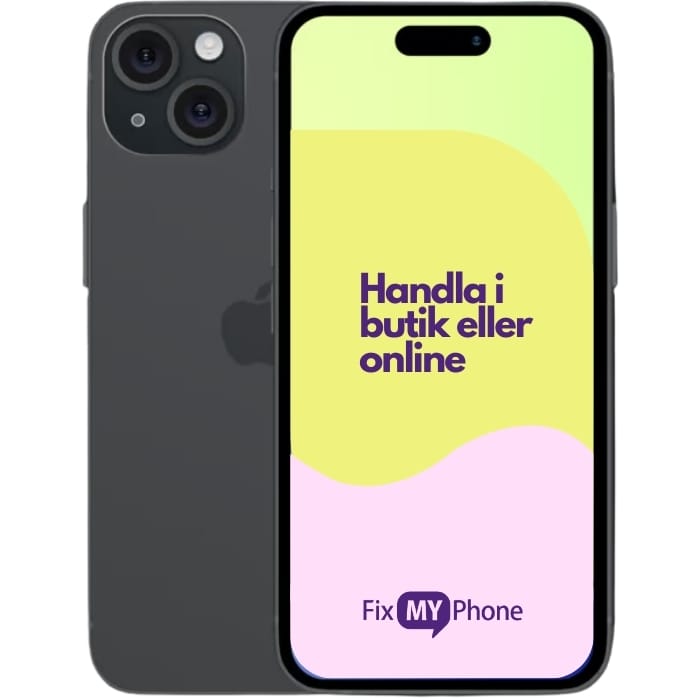 iPhone 15 refurbished och testad. Köp online eller i någon av våra 30+ butiker med trygg garanti och snabb leverans från Fix My Phone.